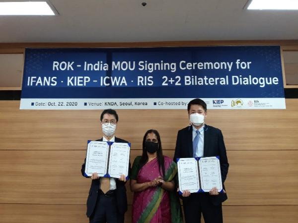 이번 체결식은 코로나19 상황을 감안하여 서울 국립외교원과 인도 뉴델리 인도세계문제협회를 연결한 화상회의 방식으로 개최되었으며, 김준형 국립외교원장, 정성춘 대외경제정책연구원 부원장, 티시에이 라가반(T.C.A. Raghavan) 인도세계문제협회 소장, 사친 차투르베디(Sachin Chaturvedi) 개발도상국정보연구원 소장, 신봉길 주인도 한국대사, 스리프리야 란가나탄(Sripriya Ranganathan) 주한 인도대사, 최원기 국립외교원 아세안·인도연구센터 책임교수, 조충제 대외경제정책연구원 세계지역연구센터 소장 등이 참석하였다.