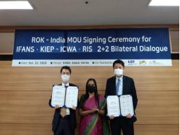 [한국4차산업신문] 외교부 국립외교원(원장: 김준형)은 10.22일 국립외교원 외교안보연구소[IFANS]·대외경제정책연구원[KIEP]-인도세계문제협회[ICWA]·개발도상국정보연구원(RIS) 간 2 2 상호 교류·협력을 위한 양해각서[MOU]를 체결하였다.