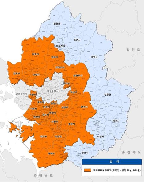 [한국4차산업신문] 경기도가 도내 23개 시·군 전역을 외국인·법인 토지거래허가구역으로 지정했다. 단, 주택이 포함된 토지를 취득하는 경우만 해당한다. 이를 통해 도는 최근 부동산 시장의 큰손으로 부상한 외국인 및 법인의 투기목적 부동산 거래를 차단하겠다는 방침이다.