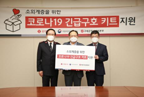 마스크, 손소독제 등 위생용품과 라면, 햇반 등 즉석식품으로 구성된 ‘코로나19 긴급구호 키트’는 구세군자선냄비본부에서 지원하는 장애인, 저소득가정 등 소외계층 약 500가구에게 전달될 예정이다.