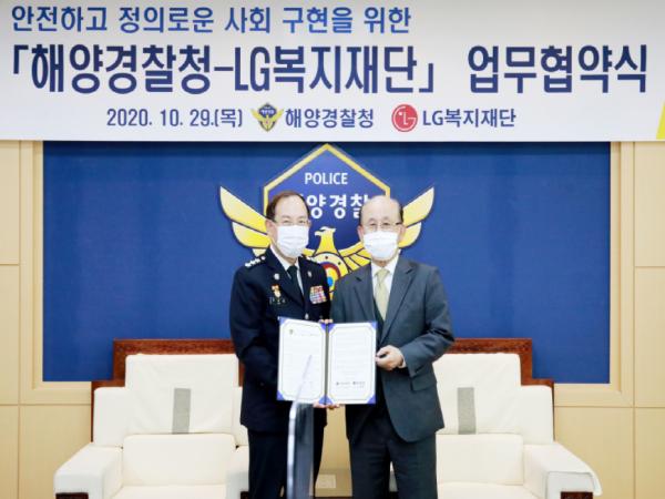 [한국4차산업신문] 해양경찰청은 LG복지재단(대표이사 이문호)과 안전하고 정의로운 사회구현을 위한 업무 협약식을 개최했다고 29일 밝혔다.