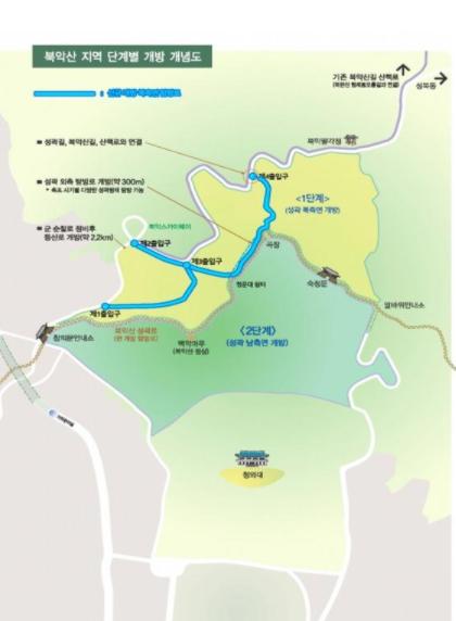 이번 조치에 따라 문화재청과 한국문화재재단은 11월 1일부터 북악스카이웨이에서 북악산 한양도성으로 진입할 수 있는 출입구 4개소와 안내소 2곳을 추가로 운영한다. 이번에 추가로 개방한 출입구를 지나 청운대와 곡장 근처에 새로 설치한 안내소까지 들어가면 안내소에서 출입증을 받아 한양도성 탐방로로 진입할 수 있다.