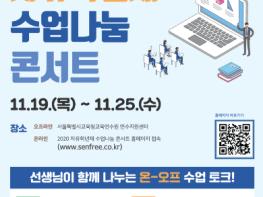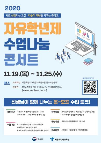 [한국4차산업신문] 서울특별시교육청은 11월 19일부터 11월 25까지 서울특별시교육청교육연수원 연수지원센터에서 7일간 중학교 교원, 교육전문직원 및 학부모를 대상으로「2020 자유학년제 수업나눔 콘서트」를 개최한다.