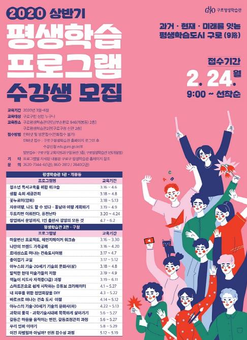 구로구(구청장 이성)가 상반기 평생교육 프로그램 수강생을 모집한다.