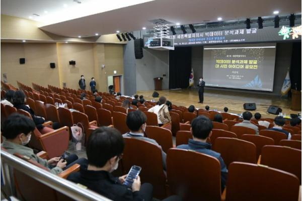 이어 우수상에는 ‘대중교통 및 개인 이동수단(PM) 연계를 통한 세종시 교통환경 개선방안 ’, ‘새로운 빌딩 물관리’가, 장려상에는 ‘로컬푸드 공급자 맞춤형 수요 예측 분석’, ‘빅데이터 분석을 통한 상가 밀집지역 자동 크린넷 문제 개선’, ‘세종시 잡월드 직업체험관 최적의 위치 선정’이 선정됐다.