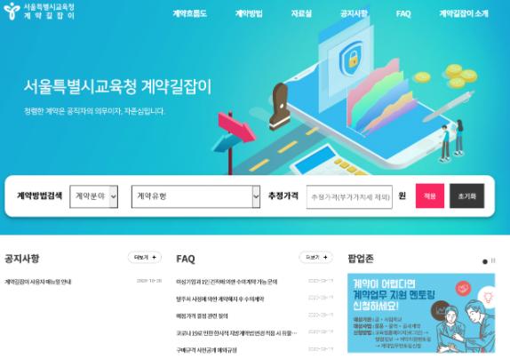 [한국4차산업신문] 서울특별시교육청은 어렵고 복잡한 학교계약업무를 초보자도 쉽게 따라할 수 있도록 비대면「온라인 계약길잡이」서비스를 11월 2일(월)부터 시작한다.