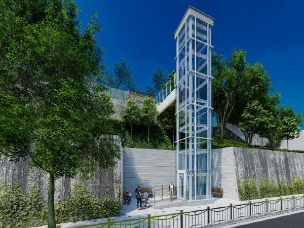 셋째, 경사가 심한 언덕 위-아래 지역을 수직으로 수직형 엘리베이터는 4곳에 설치된다. 다른 시설에 비해 공간을 많이 차지하지 않고 설치비와 유지관리비가 상대적으로 낮은 장점이 있다.