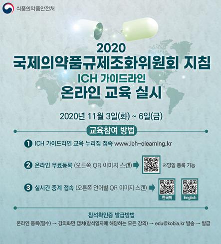 [한국4차산업신문] 식품의약품안전처 식품의약품안전평가원은 의약품 연구개발자, 제약업계 및 식약처 심사자 등을 대상으로 「2020년 국제의약품규제조화위원회 지침(ICH 가이드라인) 교육」을 11월 3일부터 6일까지 온라인으로 실시한다고 밝혔다.