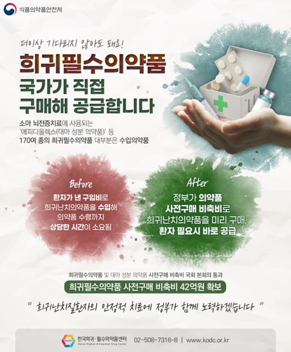 식약처는 희귀·난치질환 치료제의 개발을 지원하기 위해 희귀의약품에 대해 질환의 특성에 따라 허가 제출자료·기준 및 허가 조건 등을 따로 정하여 신속하게 허가할 수 있도록 ‘희귀의약품 지정 제도’를 운영하고 있다.