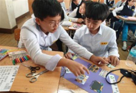 등교 및 원격수업에서 자유학기 사회과 프로젝트 수업 연구, 멘토-멘티 모둠별 협동 학습을 통해 의사소통 역량을 함양하는 소통 두잉, 사회문제를 해결하며 민주시민의 자질을 함양하는 세상에 공감하는 두잉, 온오프라인을 연결하고 통합할 수 있는 융합적 사고력 함양 두잉 활용 수업 운영