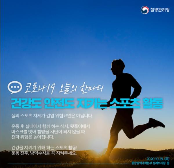 건강을 지키기 위해 하는 스포츠 활동! 운동 전후, 방역수칙을 꼭 지켜주세요.