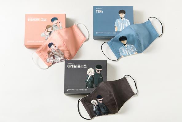 ‘케이웹툰 마스크’는 코로나19 생활방역의 핵심인 마스크 쓰기의 중요성에 대한 인식을 높이고 마스크 착용을 독려하기 위해 기획됐다. 특히, 학교에서 온종일 마스크를 쓰는 것에 불편함을 느낄 수 있는 청소년들이 좋아하는 인기 웹툰 작품 속 주인공을 마스크에 새겨 제작해 주목도를 높였다. 다음웹툰(대표 박정서)의 ▲ 광진 작가(이태원 클라쓰), ▲ 로즈옹 작가(취향저격 그녀), ▲ 이은재 작가[텐(TEN)]가 재능기부를 통해 참여했으며, 웹툰도 즐기고 코로나19도 예방할 수 있도록 다음웹툰 감상권(1만 원, 다음웹툰 제공)과 마스크 착용을 돕는 제품도 함께 제공한다.