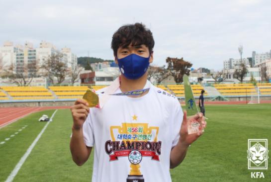 동국대 김대욱이 자신감에 찬 목소리로 당찬 포부를 남겼다. 동국대는 1일 통영공설운동장에서 통영기 제56회 대학축구연맹전에서 숭실대를 상대로 3-2 역전승을 거두면서 또 한 번 정상에 올랐다. 2020년의 두 대학축구연맹전에서 연속으로 우승 트로피를 들어 올린 동국대는 이제 U리그에서 최강의 자리를 노린다.