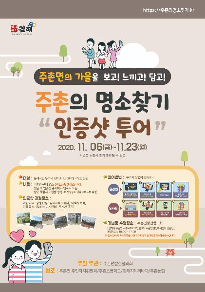 [한국4차산업신문] 김해시 주촌면 행정복지센터는 위드 코로나 시대를 맞아 주촌면의 가을을 보고 느끼고 담는 ‘주촌의 명소 찾기 인증샷 투어’를 이달 6일부터 23일까지 시행한다고 밝혔다.