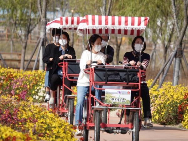 대여소에는 가족과 함께 탈 수 있는 6인용 2대, 4인용 4대와 어린이용 3대, 그린씽 등 총 43대의 자전거와 안전모 및 보호장구가 비치돼 있으며, 매주 월요일과 법정공휴일을 제외하고 연중 오전 9시부터 오후 6시까지 운영하고 있다.