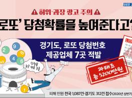 공정거래위원회가 운영하는 1372 소비자상담센터 자료에 따르면 올해 상반기에만 로또 정보제공업체에 대한 민원이 전국적으로 1,087건, 경기도에서만 312건이 접수됐다. 허위·과장 광고로 인한 계약해지 요청 건이 대다수를 차지하고 있어서 단속 필요성이 꾸준히 제기돼 왔다.