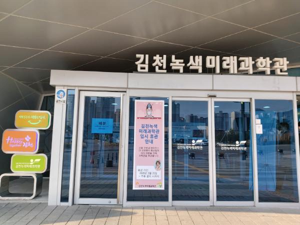 김천녹색미래과학관은‘코로나바이러스감염증-19’확산방지와 시민의 안전을 위한 선제적 대응조치로 2월 21일부터 상황 종료시까지 임시 휴관한다.