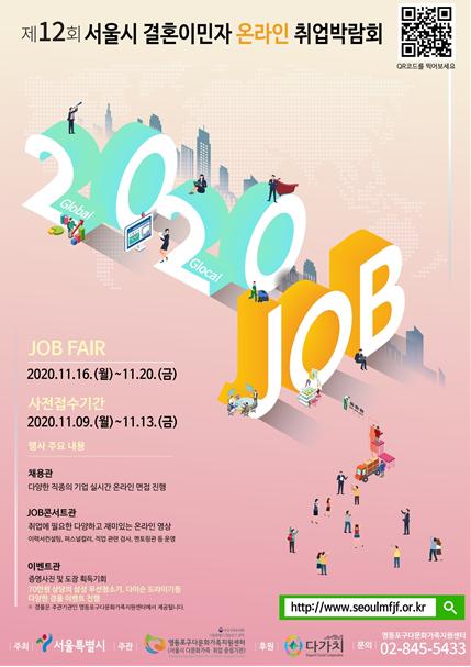 [한국4차산업신문] 서울시는 오는 11월 16일(월)~11월 20일(금) 5일간, 코로나19 상황에 대응해 비대면으로 ‘제12회 서울시 결혼이민자 온라인 취업박람회’를 개최한다.