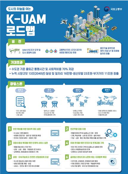 도심항공교통은 기존 항공산업과 달리 세계적인 수준에서의 주도권·기술표준 등이 아직 확립되지 않은 분야이다. 이러한 상황에서 우리 정부는 세계 어느 나라보다도 앞서 종합적인 로드맵을 발표하여 국내 도심항공교통 산업을 육성·지원하고 있다.