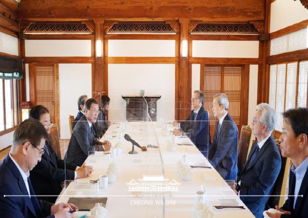 [한국4차산업신문] 문재인 대통령은 오늘 12시부터 14시 10분까지 청와대 상춘재에서 외교안보 분야 원로 및 특보들과의 오찬 간담회를 가졌다.