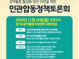 서남권 경기도 소통협치국장은 “시민사회 발전과 더불어 경기도의 공익활동이 나아가야 할 방향을 함께 모색하는 자리이며, 토론 결과를 토대로 새로운 제도와 정책이 민관협력으로 추진된다면 협치 도정의 좋은 사례가 될 것”이라고 말했다.