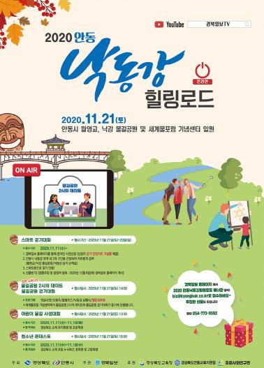 [한국4차산업신문] 경상북도와 안동시가 주최하고 경북일보가 주관하는 「2020 안동 낙동강 힐링로드」가 11월 21일 월영교, 낙강물길공원, 세계물포럼기념센터 일원에서 개최된다.