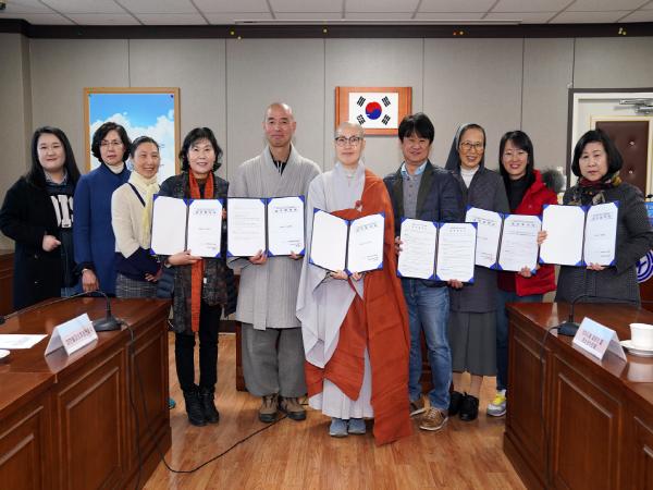 이번 협약식은 품성도야 인성교육 프로그램을 운영할 단체를 공모하여 선정된 5개 종교단체와 들엄시민 제주어 영상물(애니메이션) 제작 업체로 선정된 1개 단체와 이루어졌다.