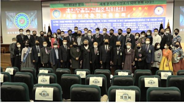 [한국4차산업신문] 11월 13일 오후 2시에 국회도서관 대강당에서 더불어민주당 오영훈 국회의원실이 주최하고 사단법인 훈민정음기념사업회가 주관한 훈민정음탑건립조직위원회 발족식이 『세종어제훈민정음 총록』헌정식을 겸해 코로나 19의 규칙을 준수하여 50명만 참석한 가운데 거행되었다.