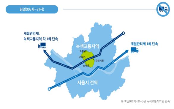운행제한 위반 시에는 10만원의 과태료가 부과된다. 특히, 지난해 12월부터 시행 중인 사대문 안 녹색교통지역 5등급 차량 운행제한은 별도로 단속되기 때문에 각별한 주의가 요구된다.