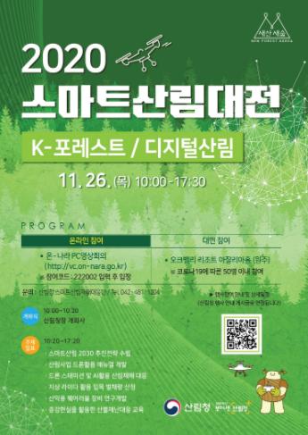 [한국4차산업신문] 산림청은 오는 26일 온-나라 피씨(PC)영상회의 및 대면회의를 통해 2020 스마트산림대전을 개최한다.