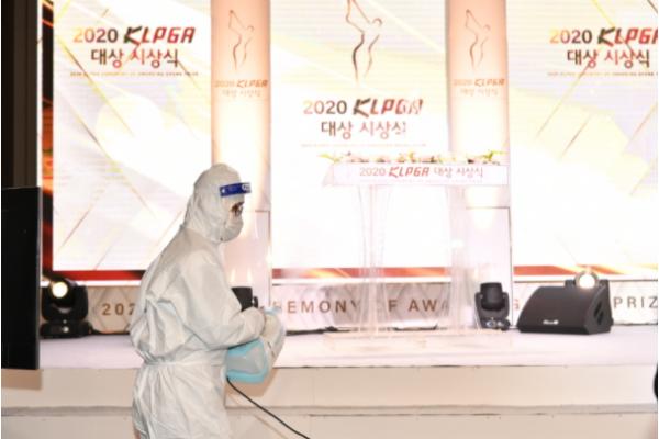 ‘2020 KLPGA 대상 시상식’은 정부의 방역지침 및 사회적 거리두기가 2단계로 격상됨에 따라 수상 선수와시상자 등 최소 인원만 참석하는 소규모 행사로 진행됐다. 모든 참석자는 행사장 도착 전에 사전 문진표와 일일 문진표를 온라인으로 제출했으며, 사전 배부한 NFC 스티커를 통해 실시간으로 동선을 조회하고 체온을 측정하는 등 물 샐 틈 없는 방역 시스템을 구축했다.