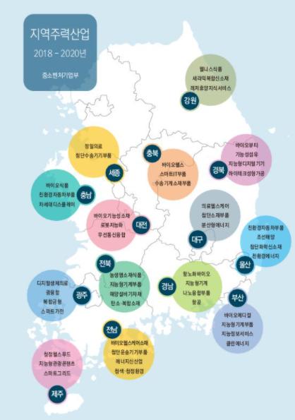 비수도권 14개 시·도가 지역별 특성에 맞게 48개 지역주력산업을 선정육성중이며, 정부는 해당산업 중소기업에 대한 기술개발 및 사업화 자금지원을 통해 이를 뒷받침하고 있다.