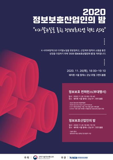 ‘디지털뉴딜을 통한 정보보호산업 혁신성장’을 주제로 열린 이번 행사에는 방역 수칙 준수를 위해 비대면·대면 행사를 동시에 진행했으며, 정보보호 산·학·연 관계자들이 참석해 정보보호 산업계의 올 한해 성과와 2021년 발전방향에 대한 의견을 나누었다.