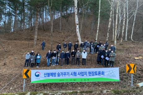 이번 토론회 참석자들은 ’21년 신규 추진 사업인 산불예방 숲가꾸기에 대한 효율적 추진과 현장에서의 사업 이해도 제고를 위해 권역별 시험사업지 답사를 통한 ① 기존의 숲가꾸기와 차별화된 작업 방법, ② 산불취약지역의 내화력 증진 등 활엽수림 조성을 위한 적정 관리 방향, ③ 숲가꾸기를 통해 발생하는 산물에 대한 효율적 처리 방안에 대해 논의했다.