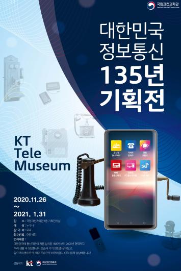 국립과천과학관(이정모 관장)은 KT(대표이사 구현모)와 함께 한성전보총국 개설 135주년을 기념하여 정보통신 사료 온·오프라인 체험전인 ‘KT 텔레 뮤지엄(KT Tele Museum)’을 개최한다고 29일 밝혔다. 전시는 2021년 1월 31일까지 진행한다.