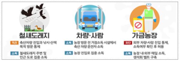 가금 계열화업체에 대해서는 “계열화 가금농가들이 농장 4단계 소독을 반드시 매일 실시하고, 철새도래지는 물론 작은 저수지·하천·농경지에도 출입하지 않도록 지도·점검해줄 것”을 당부하였다.