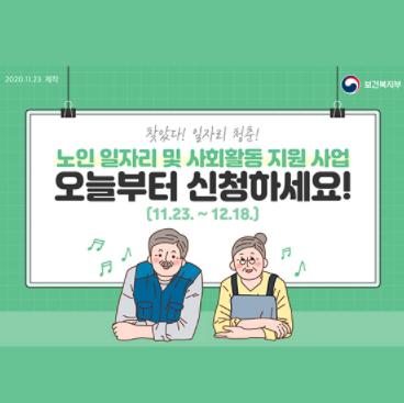 어르신들의 건강하고 행복한 노후생활을 응원하는 노인일자리 및 사회활동 지원 사업!