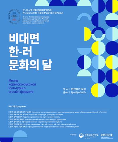 [한국4차산업신문] 문화체육관광부는 한국국제문화교류진흥원(원장 김용락)과 함께 11월 30일부터 12월 31일까지 코로나19로 지친 한-러 양 국민을 다양한 비대면 문화교류행사로 위로하는 ‘비대면 한-러 문화의 달(Korea-Russia Virtual Culture Season)’을 개최한다.