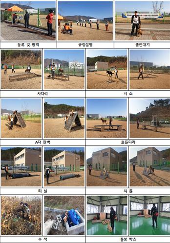 평가과목은 흔들다리, 시소 등 장애물 6종 연속통과하기, 주변 야산에서 2명의 가상 실종자를 구조하는 산악수색, 구조물 수색 등으로 인명구조견의 수색능력, 장애물 인지능력, 체력, 핸들러 운용능력 등을 평가했다.