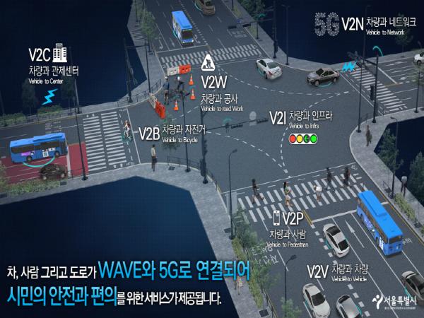 삼성전자는 모바일용 아닌 세계 최초로 차량탑재용 5G + WAVE 등 모든 차량무선통신이 가능한 V2X 단말을 서울시에 단독 납품하였고, SK텔레콤에서는 5G 통신을 통해 0.1초내 교통신호정보, 차량위치, 도로위험 등 모든 정보가 상호 교환되는 초저지연 자동차 커넥디드 기술 개발을 지원하였다.