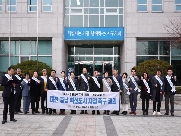대전 서구의회는 48만 서구 주민의 뜻을 모아 국가균형발전특별법 개정 국회통과와 대전·충남에 혁신도시 지정을 촉구했다.