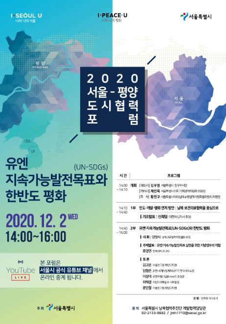 [한국4차산업신문] 서울시는 2일 14시~16시, ‘유엔 지속가능발전목표(UN-SDGs)와 한반도 평화’를 주제로 ‘2020 서울-평양 도시협력포럼’을 온라인으로 개최한다.