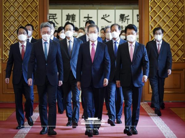 “근래 경제력뿐 아니라 방역과 보건.의료, 민주주의, 국민의식, 문화의식 등의 소프트한 면에서 우리 위상이 크게 높아졌다. 외교부에서 업무와 관련해 충분히 말씀하셨겠지만 한 가지만 더하자면, 외교 업무를 하면서 한국이 가지고 있는 소프트한 국력을 충분히 활용해 달라는 것이다.