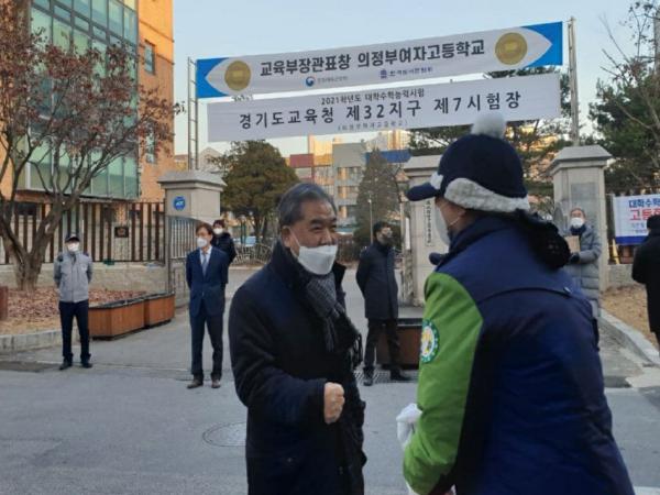 이어, 의정부여자고등학교로 이동해 입실하는 수험생을 응원하고 경찰, 자원봉사자들에게 직접 감사의 마음을 전했다.