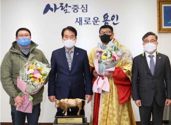 [한국4차산업신문] 백군기 용인시장은 4일 시청 시장실에서 불혹의 나이를 극복하고 한라장사에 오른 우형원 선수 등 용인백옥씨름단과 시 씨름협회 관계자들을 격려했다.