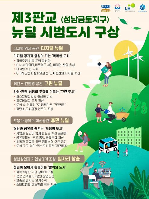 [한국4차산업신문] 경기도가 제3판교(성남금토지구)를 뉴딜 시범도시로 조성한다. 뉴딜 시범도시란 정부와 경기도의 뉴딜을 집약한 축소판으로 D.N.A(데이터, 5G, AI), 비대면 산업을 육성하고 도시 내 저탄소 인프라를 구축해 혁신과 일자리를 창출하며 청년과 신혼부부의 주거안정을 계획한 도시를 말한다.