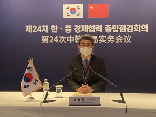 [한국4차산업신문] 제24차 한·중 경제협력 종합점검회의가 양동한 외교부 양자경제외교국장과 펑강(Peng Gang 彭) 중국 상무부 아주사장을 수석대표로 하여 12월 9일 서울-베이징 간 화상회의 방식으로 개최되었다.