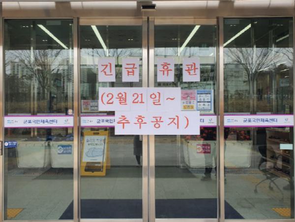 군포시는 코로나19 확진자의 군포시내 경유가 확인돼 시민안전 확보를 위해 2월 3일부터 16일까지 산하시설들에 대해 휴관조치를 내린 바 있다.