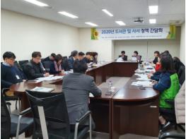 경기도의회 교육행정위원회 김미리 의원(더불어민주당, 남양주1)은 제1교육위원회 김경근 의원(더불어민주당, 남양주6)과 함께 20일 경기도의회 제1간담회의실에서 ‘2020 경기도 도서관 및 사서정책 간담회’를 개최하였다. 이번 간담회는 학교도서관 사서 배치 및 정원관리, 업무환경 개선 등 교육공무직사서들의 애로사항을 청취하고 개선방안을 논의하기 위해 마련되었으며, 송치용 교육행정위원회 위원을 비롯해 한국학교사서협회 경기지부 담당자와 교육공무직노조, 경기도교육청 관계부서가 참석했다.