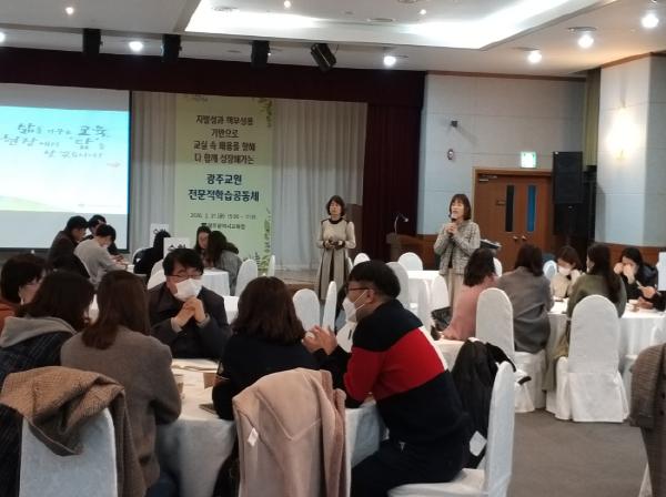 발대식의 특별 강연 중 군산시교육지원청 박일관 교육장은 “전문적학습공동체 활성화를 통해 광주지역 교원들이 교육과정 및 수업 등을 공유하고 배운 내용을 함께 실천함으로써 교원들의 수업?평가 역량이 향상될 것으로 기대된다”고 말했다.